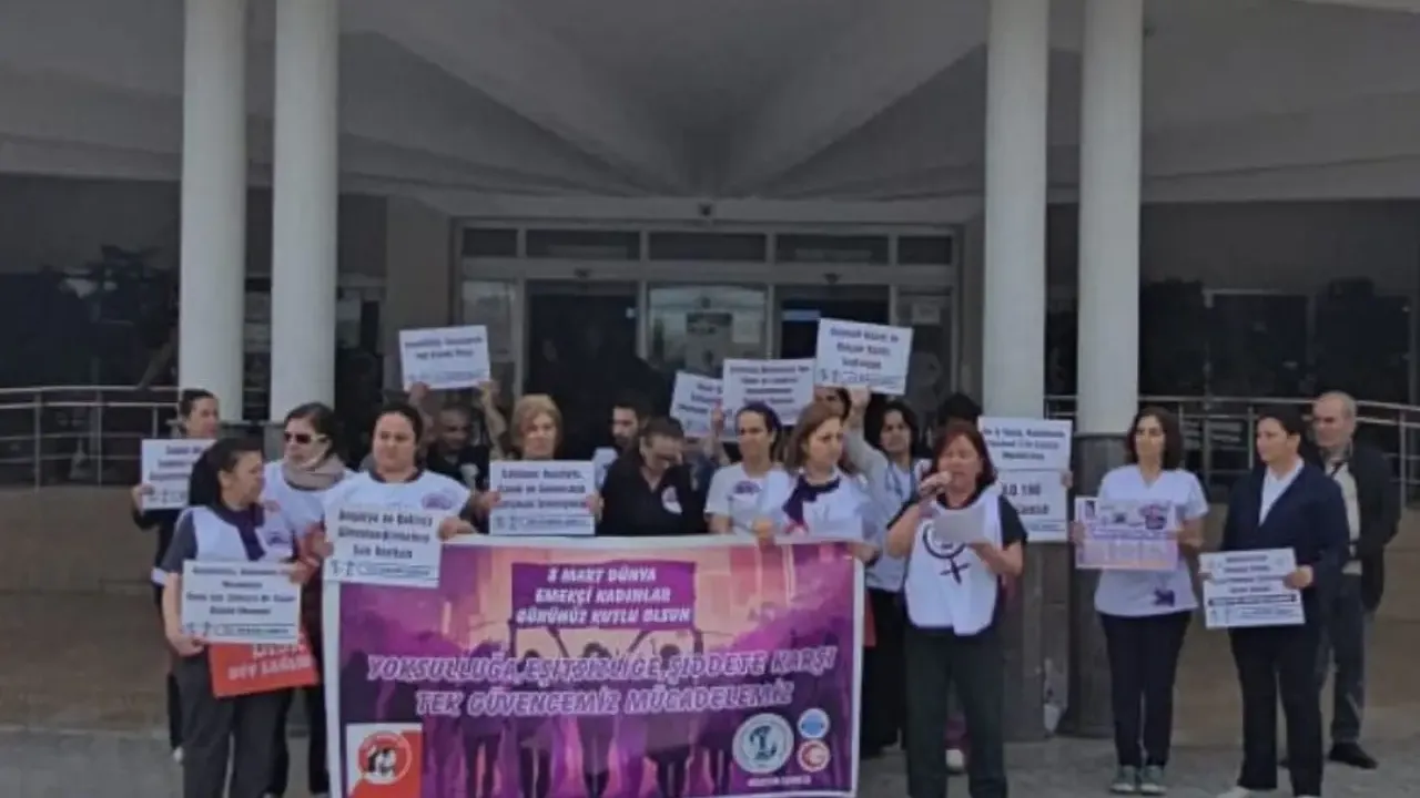 Gazete Emek- Dev Sağlık-İş ve Sağlık ve Sosyal Hizmet Emekçileri Sendikası (SES) üyesi kadınlar, 8 Mart Dünya Emekçi Kadınlar Günü dolayısıyla Mersin Üniversitesi Hastanesi poliklinik kapısı önünde basın açıklaması yaptı. Kadınlar, uzun çalışma saatleri, düşük ücretler ve personel eksikliğinin iş yükünü artırdığını vurgulayarak, sağlıkta şiddetin de özellikle kadın emekçileri hedef alındığı ifade edildi.